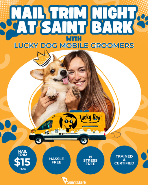 Join us on Tuesday, April 1st from 4PM-8PM for a special visit from Lucky Dog Mobile Groomers! They’re rolling in